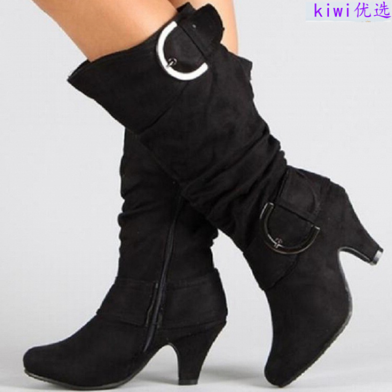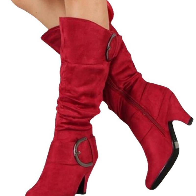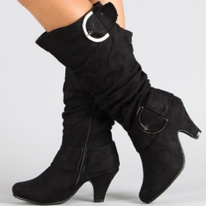 Home Women's Knee High Boots 2025 New Autumn and Winter Comfortable Design High Heel Fashion Women’S Shoes | Block Heel, Slip-on Closure, Plain Toe, Low Heel, Fabric Upper, Superfine Fiber Inner, Rubber Insole, Sole, Women Shoes