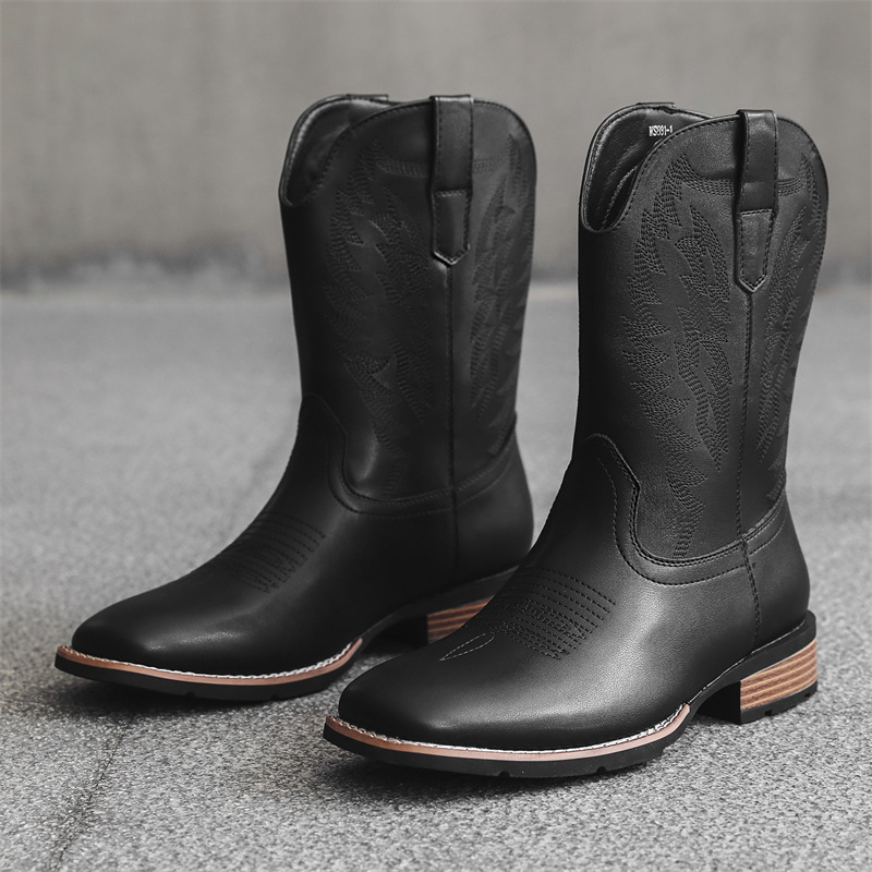 Home Women's Knee High Boots 881 Cowboy Boots | Western Cowboy Boots Fashion Embroidered Riding Boots V-Cut Long Boots Export Large Size | Mid Heel, Slip-on Closure, Polyurethane Upper, Superfine Fiber Inner, Rubber Sole, Women Shoes