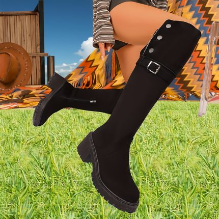 Be the first to review “A Pair of Women’S Knee-High Boots, Casual Western Style, with Side Zipper | Fabric, Round Toe, Platform Heel, Solid Color, Suitable for All Seasons” Cancel reply