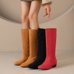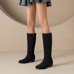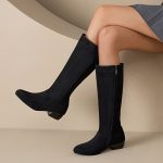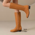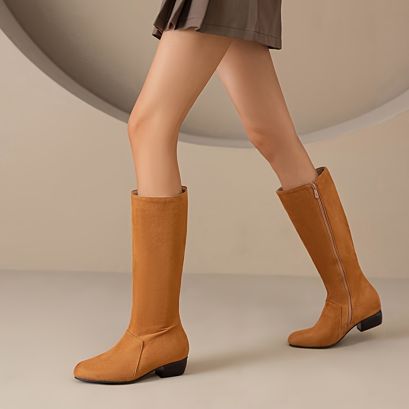 Stylish Knee-High Boots for Women Featuring a Round Toe, Comfortable Low Heel, Side Zipper, And Designed for Wider Calves, Perfect for Dressy Occasions., Women Shoes