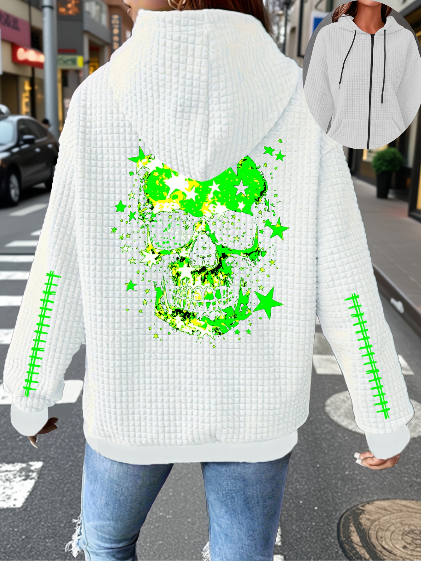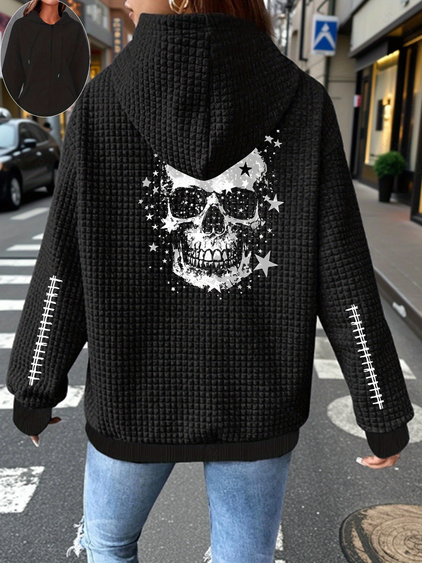 Plus Size, New Women’s Hooded Sweatshirt Jacket, Plus Size Fashion Waffle Hooded Sweatshirt, Women’s Comfortable Zip-Up Hooded Sweatshirt, Casual Plus Size Long Sleeve Jacket