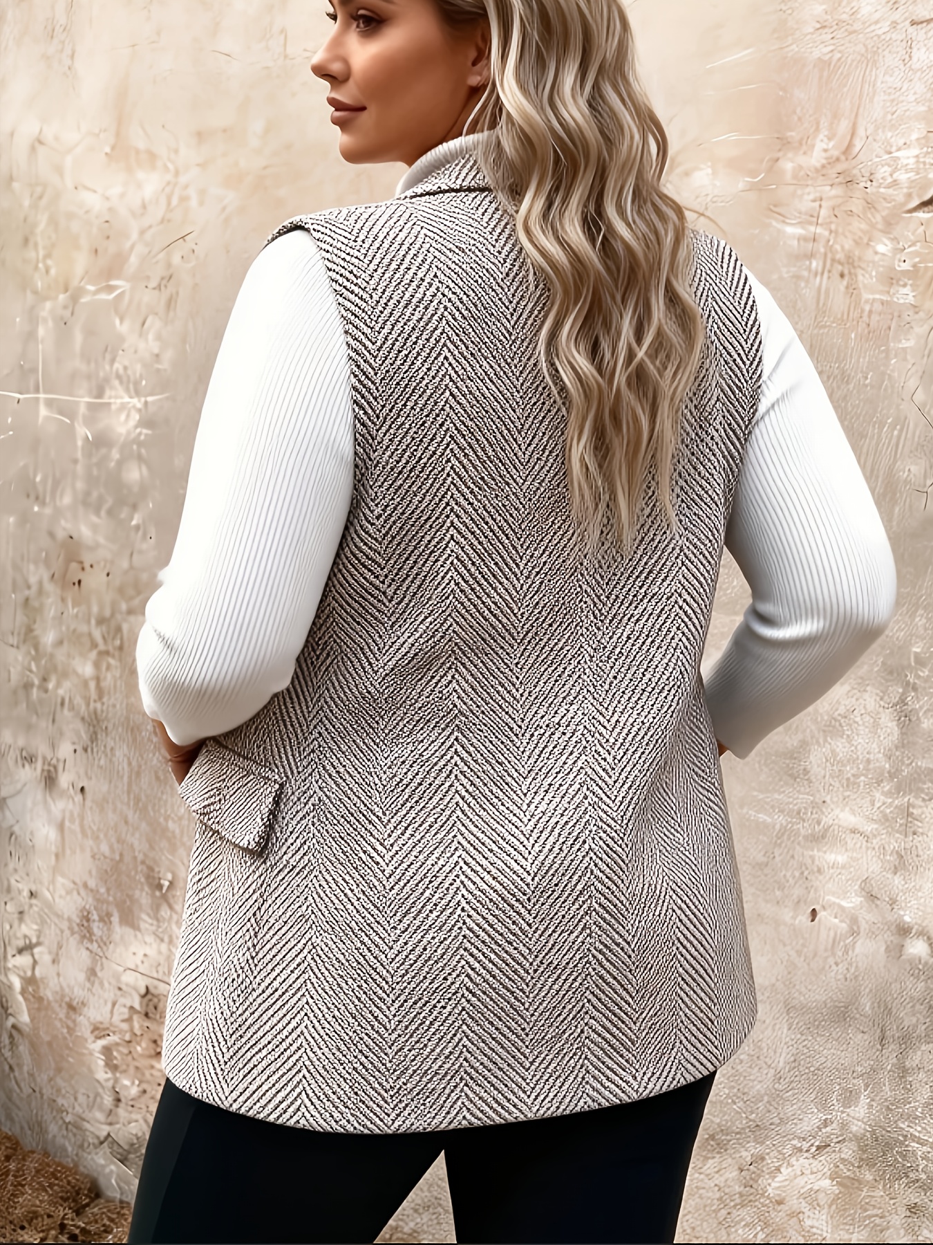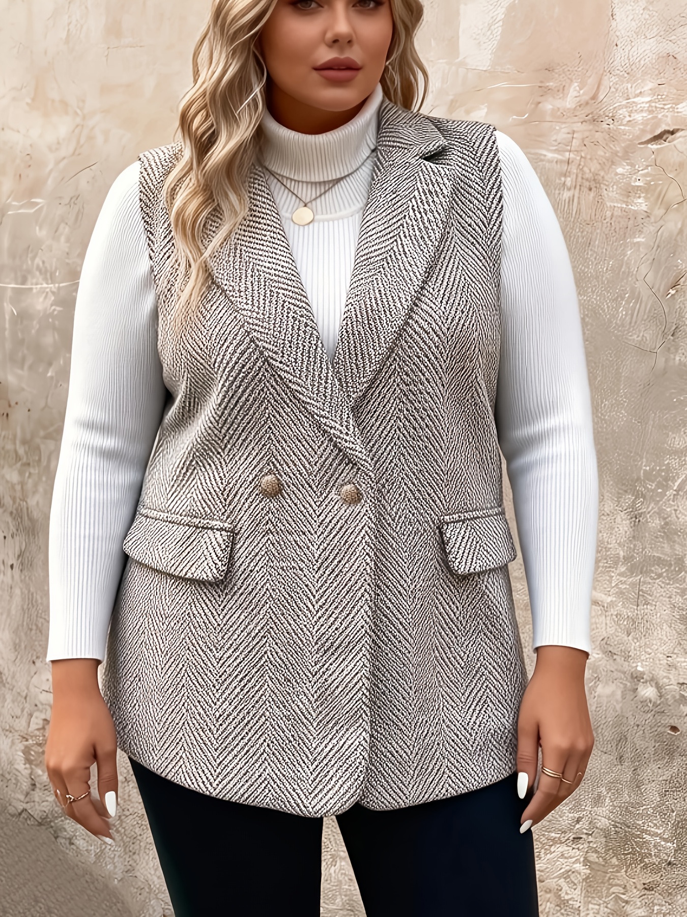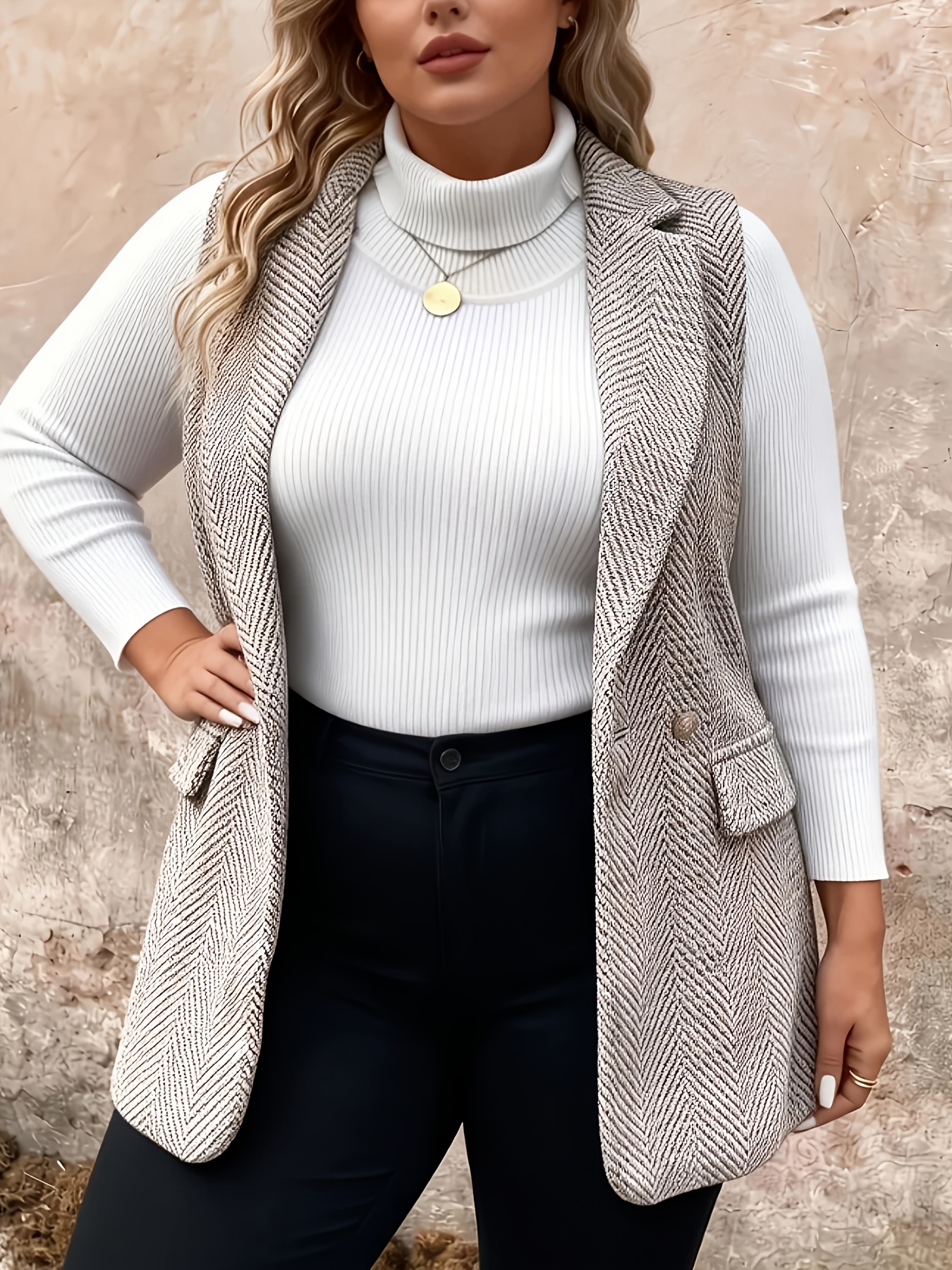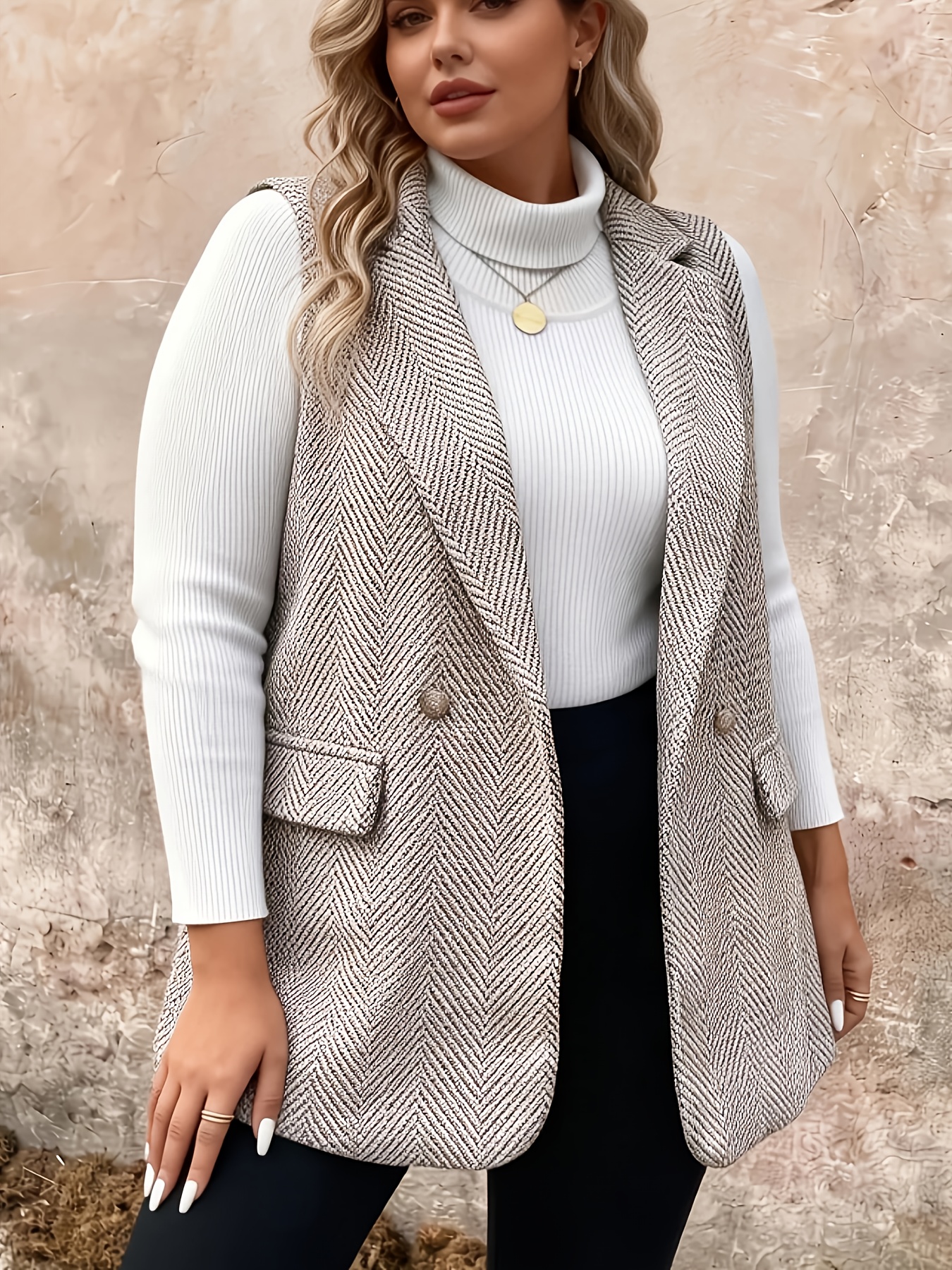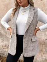 Plus Size – Plus Size – Elegant Plus Size Women’S Vest Coat | Soft Tweed, Lapel Collar, Single-Breasted Design, Suitable for Casual or Formal Occasions