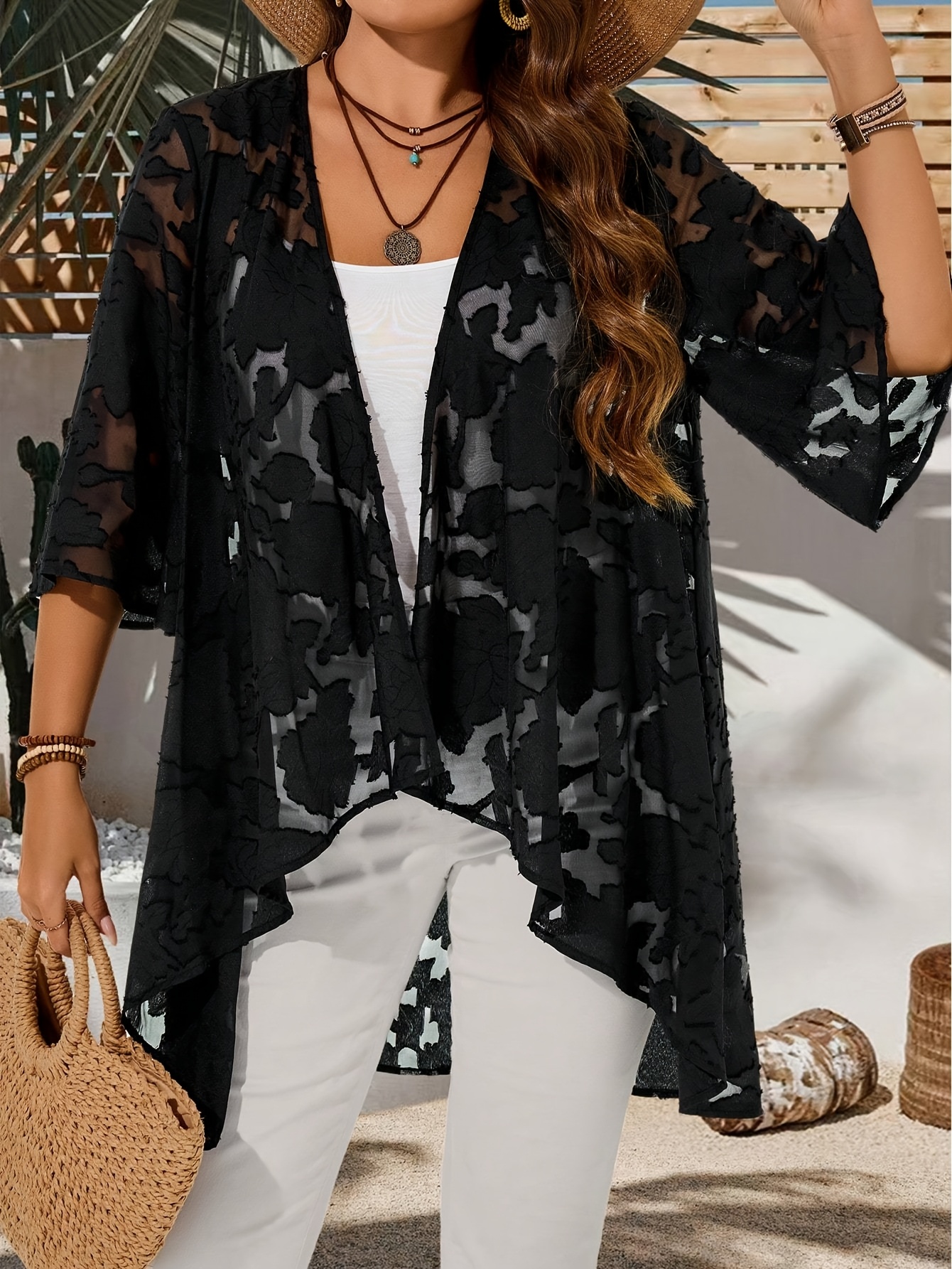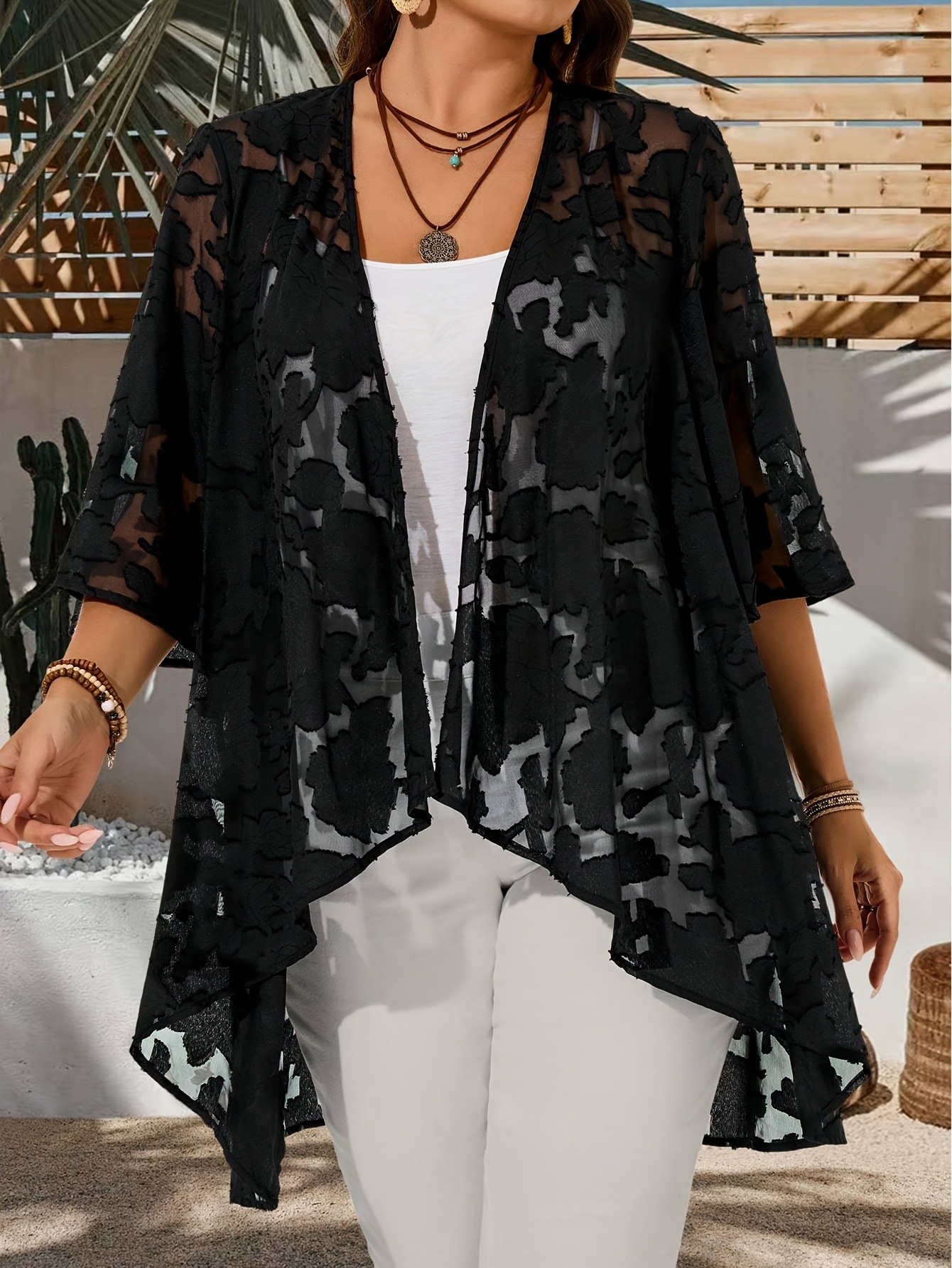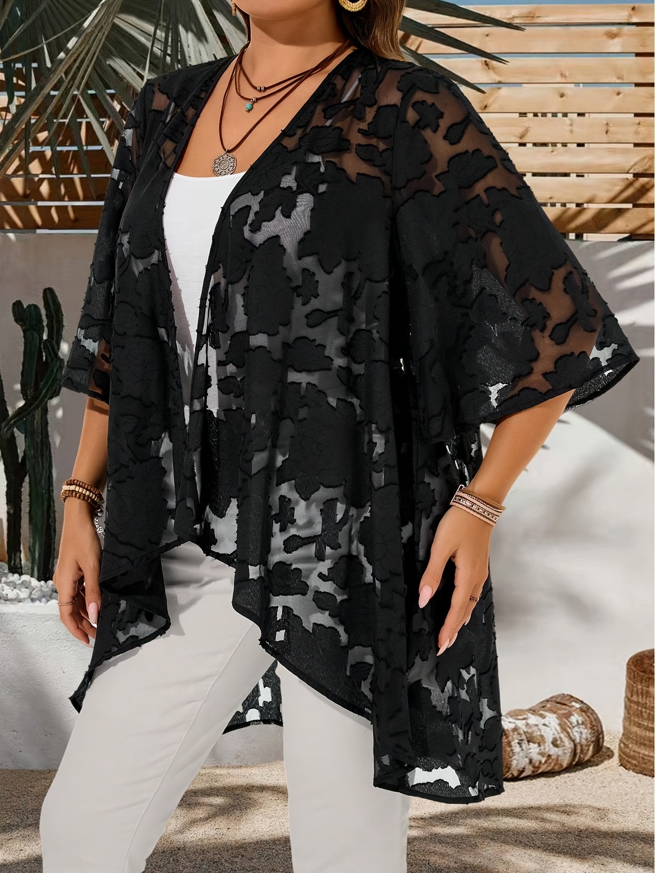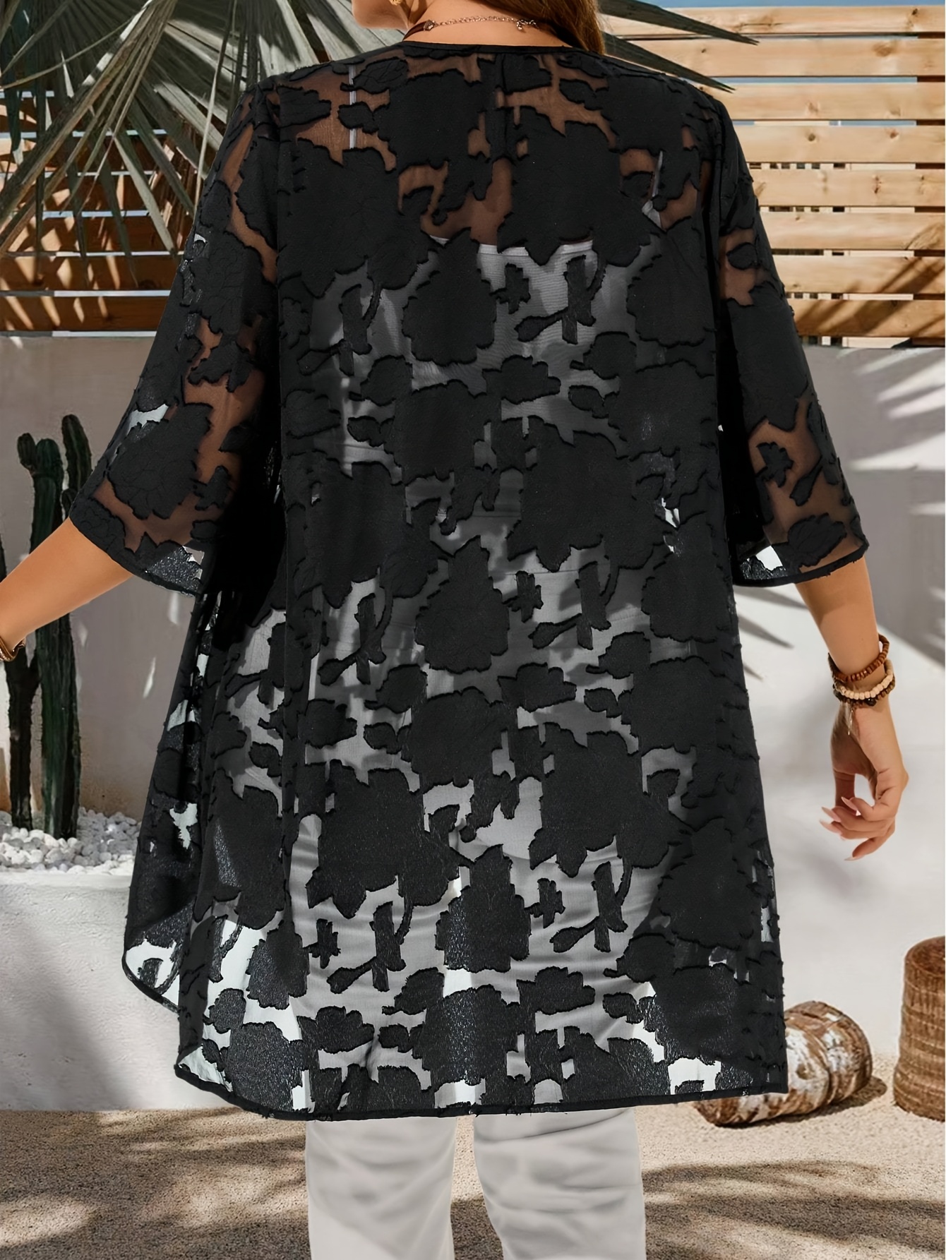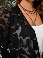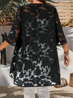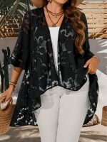 Plus Size – Plus Size – Women’S Plus Size Casual Cardigan – Solid Color with & Floral Pattern, Open Front Design, Long Sleeves, Lightweight Spring Outerwear for Casual Attire, Spring Cardigan | Floral Pattern Cardigan | Nonstretch Fabric
