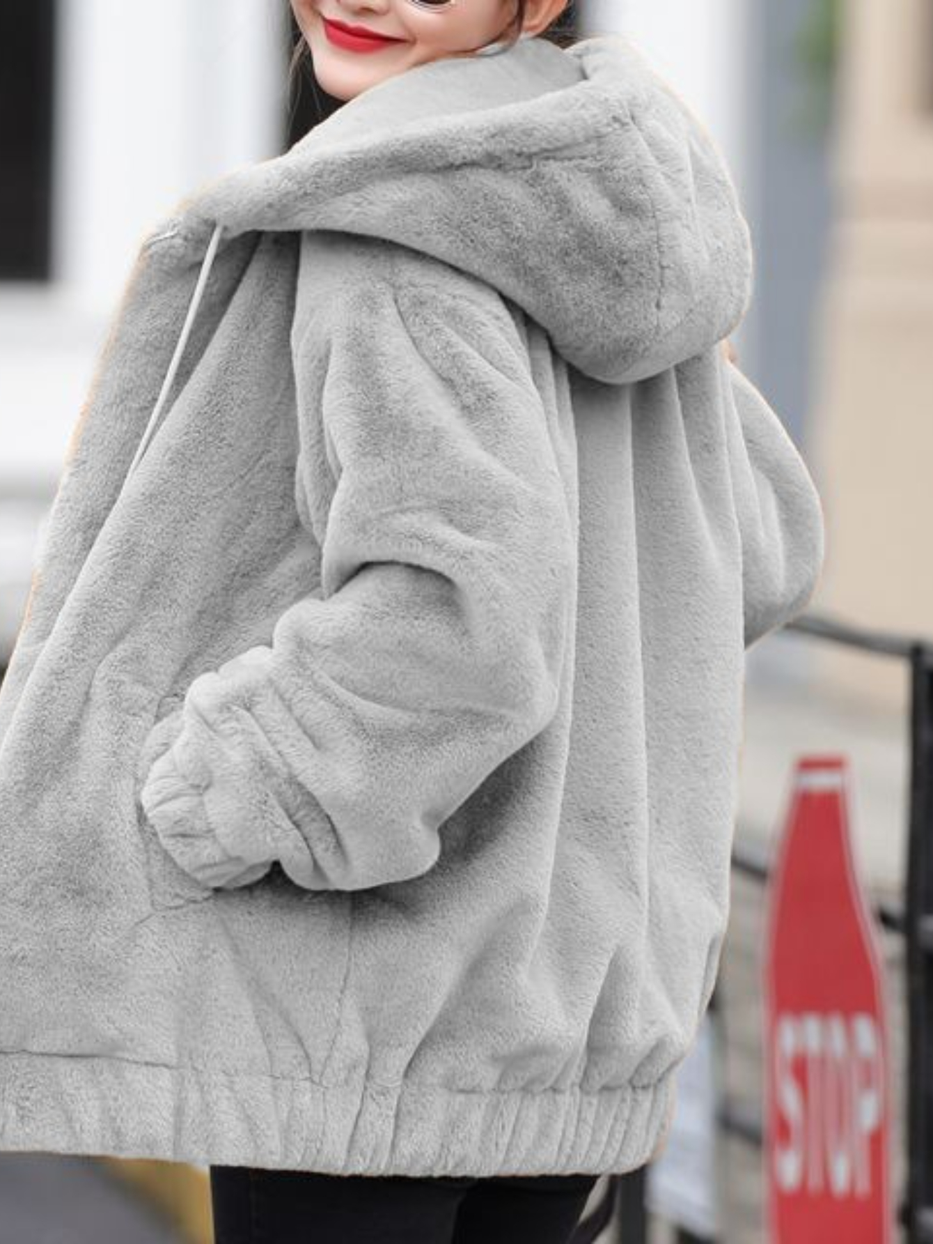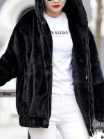 Plus Size – Plus Size – Women’S Plus Size Flannel Hooded Loose Warm Long Sleeve Fleece Short Jacket | Casual Style, Solid Color, Non-Stretch Fabric, Zipper Detail, Fallu002FWinter Season