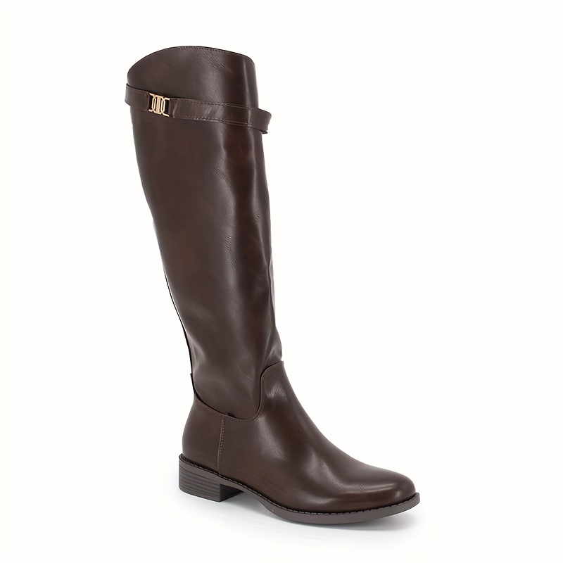 Home Women's Knee High Boots Stylish Knee-High Boots for Women Featuring a Round Toe, Comfortable Low Heel, Side Zipper, And Designed for Wider Calves, Perfect for Dressy Occasions., Women Shoes