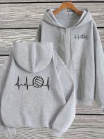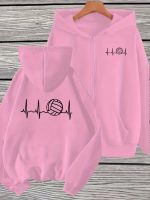 Home Sporty Sweatshirts Women’s Full-Zip Hooded Jacket, Volleyball Heartbeat Line Pattern Zip-Up Hoodie, Regular Fit, Comfortable Fabric, Easy Care, All-Season, Multiple Sizes and Colors, Trendy Women’s Printed Cardigan Sweatshirt, for Sports, Fitness, and Casual Outings