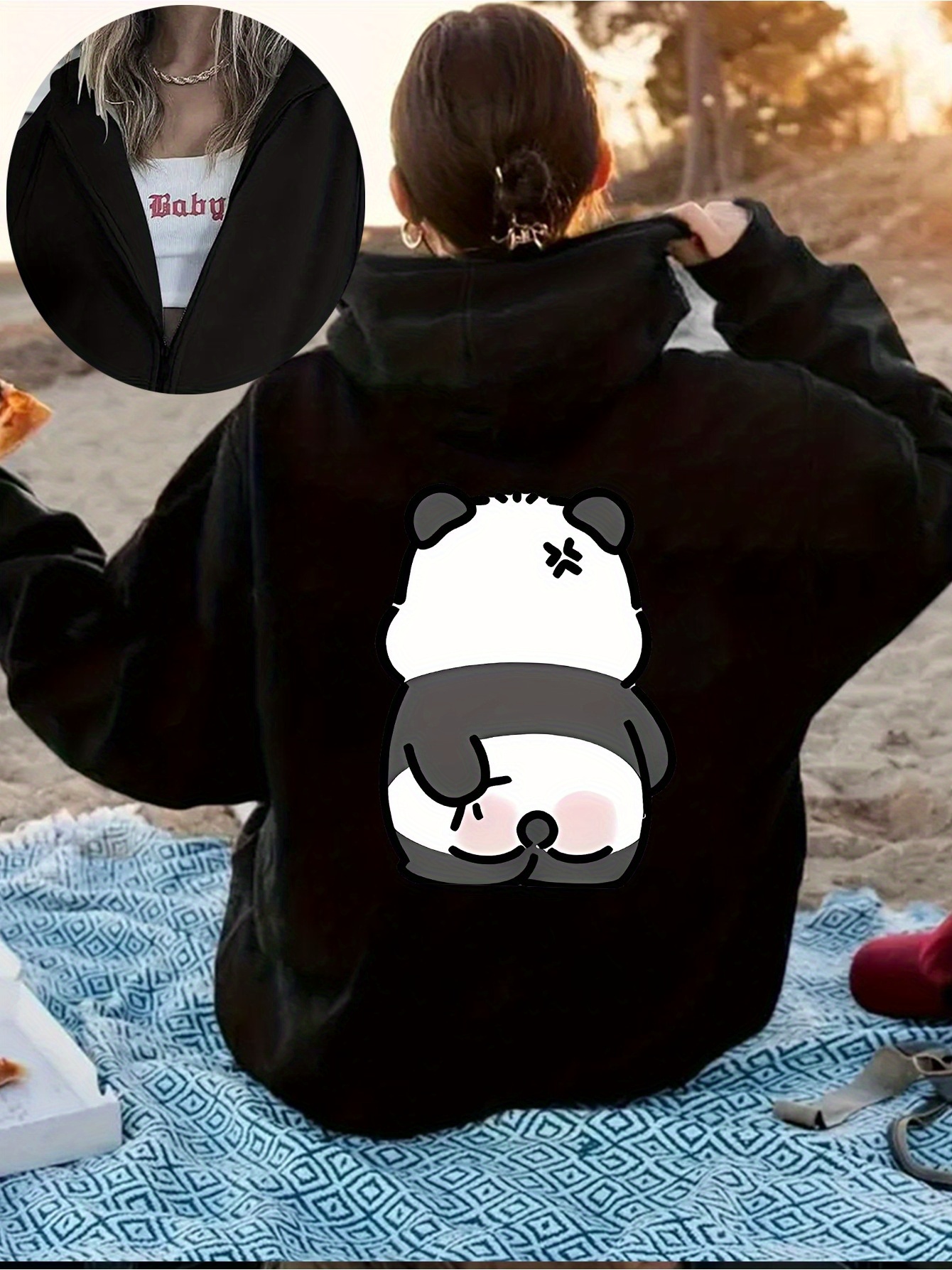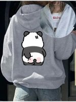 Home Sporty Sweatshirts Women’S Hoodie – Cute Panda Graphic Zip-Up Hooded Sweatshirt, Light Grey with Back Print, All-Season Casual Pullover for Everyday & Panda Lovers Outfits, Panda Gifts, Comfortable Clothing, Playful Design, Durable Fabric, Streetwear Fashion, Trendy Sweatshirt, Soft Material, Zipup Top, Women