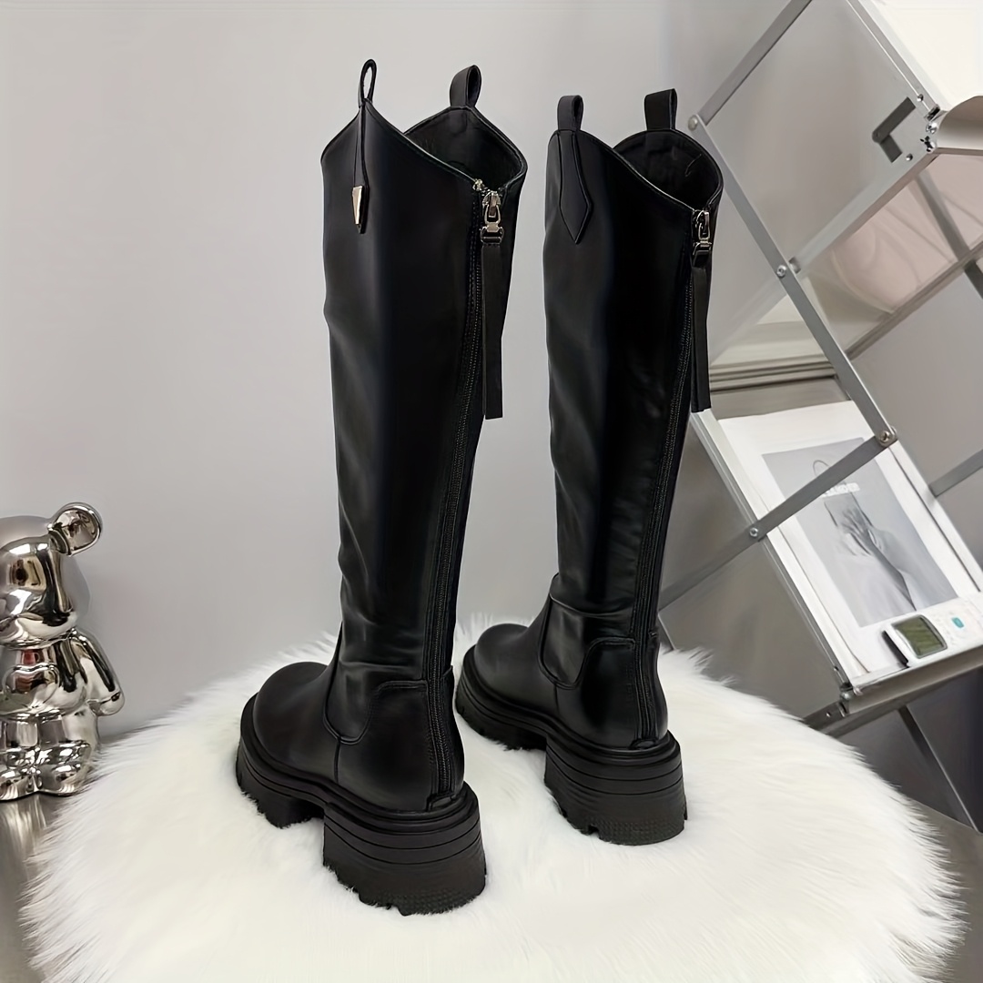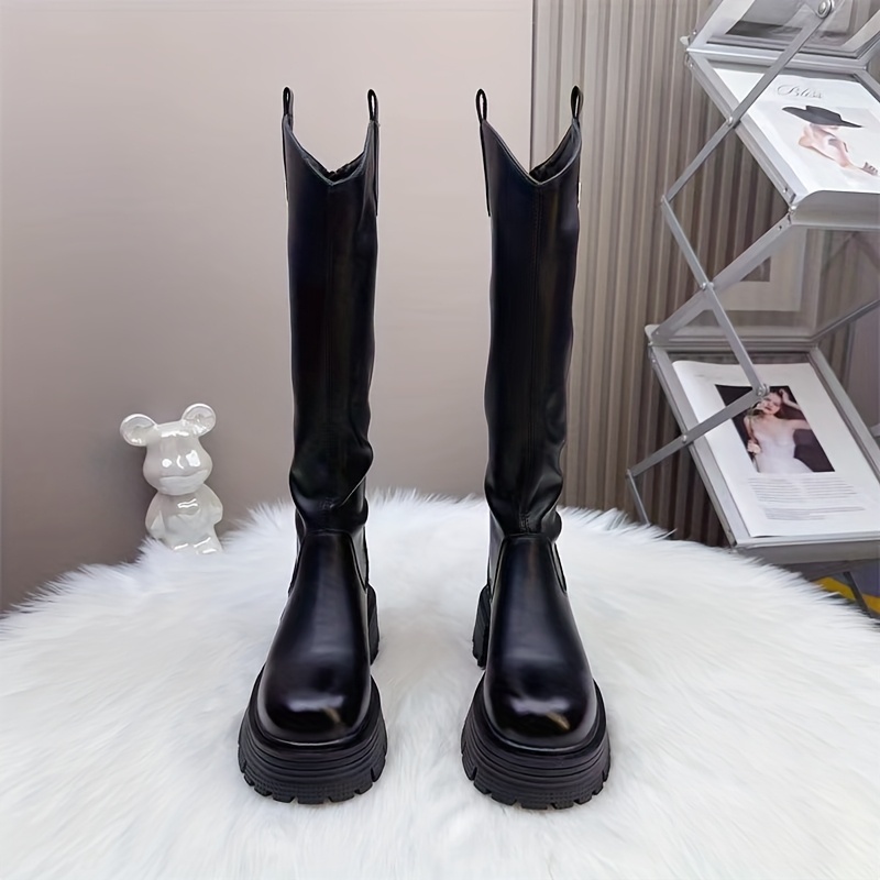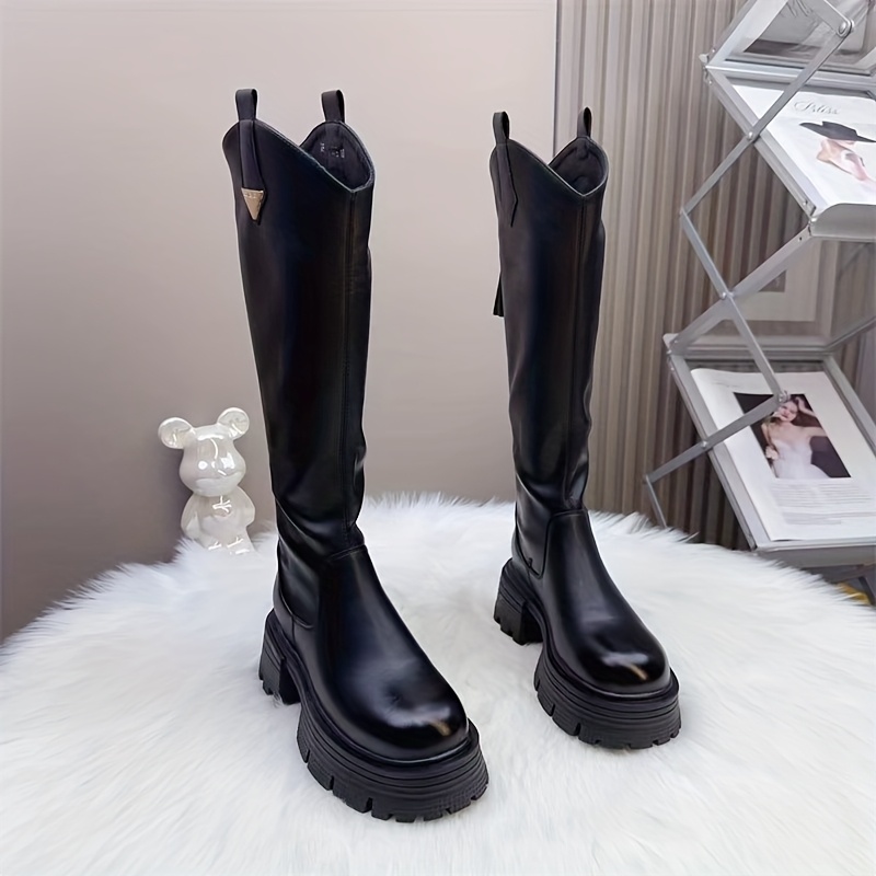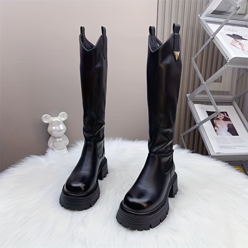 Women’S Knee-High Boots for Winter 2025, Featuring a Versatile And Easy Design in Black, with High Heels And a Thick, Chunky Sole., Women Shoes