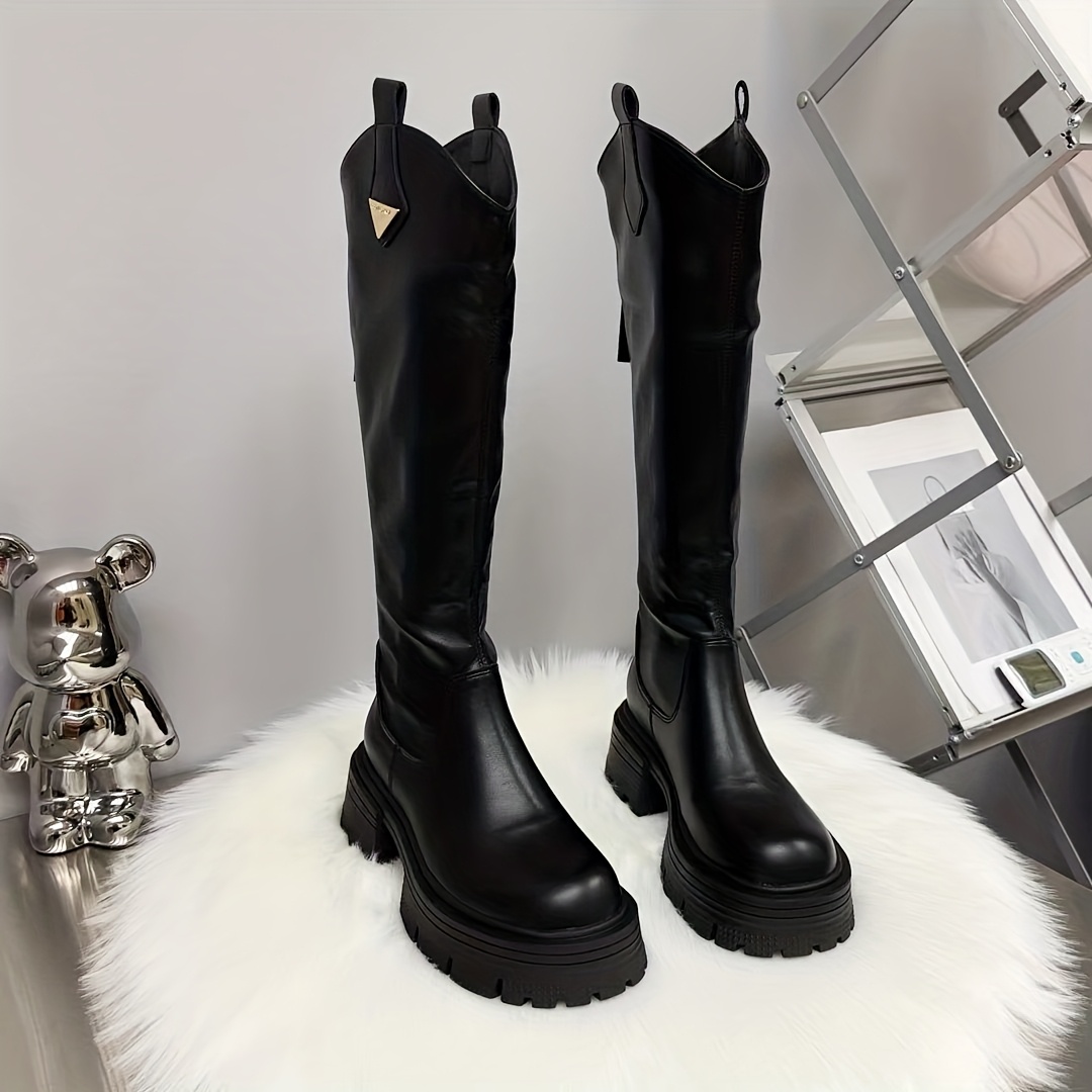 Home Women's Knee High Boots Women’S Knee-High Boots for Winter 2025, Featuring a Versatile And Easy Design in Black, with High Heels And a Thick, Chunky Sole., Women Shoes
