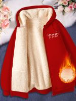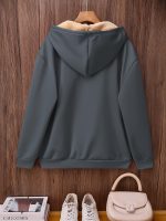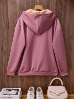 Women’s Winter Drawstring Pocket Hooded Sweatshirt Cardigan Jacket, Thick Windproof Fabric for Casual, Sports, and Home Use. Fleece-Lined Thickened Design with Faux Lamb Lining for Extra Warmth Retention. Machine Washable Pullover with Comfortable